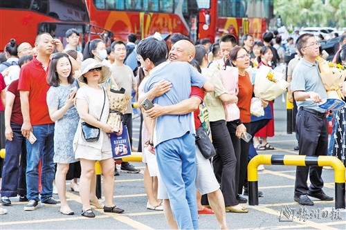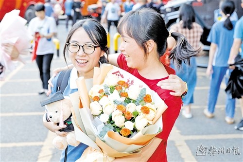 6月9日18时15分,随着生物学科目考试结束铃声的响起,2025年广东夏季高考落下帷幕。在梅城各个考点,考生们从考场鱼贯而出,家长、老师们送上鲜花和拥抱,大家合影留念定格青春画面……挥别高考这场“成人礼”,考生们迎来崭新的开始,怀揣梦想再出发。