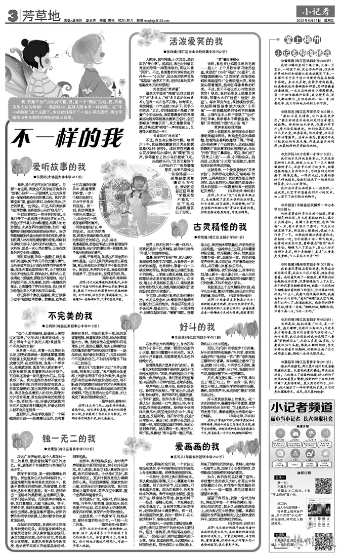 我,有属于自己的良好习惯,我,是一个“调皮”的娃,我,有着不为人知的特别……我的眼中,是别人眼中不一样的我。在“不一样的我”这个主题下,小记者们展开了一场心灵的旅行,用文字描绘出各自独特而精彩的成长画卷。