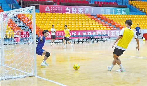 本报讯 (记者李盛华)十五运会群众比赛足球项目五人制男子甲组比赛即将开赛。6月12日,记者走进比赛场馆探营,了解队伍的备战情况。