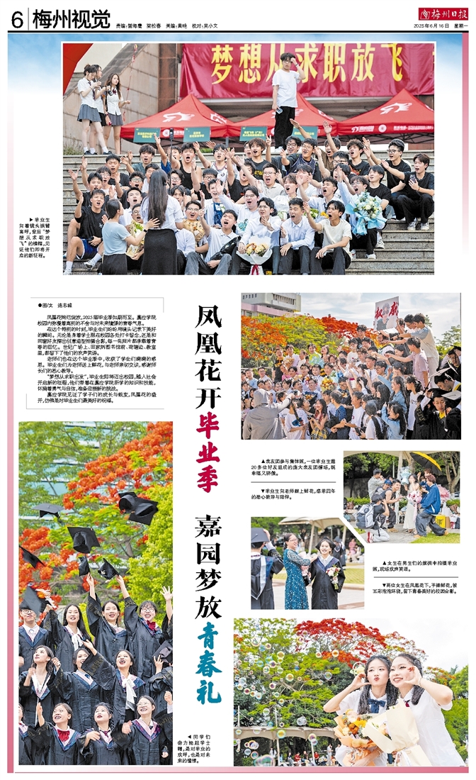 凤凰花绚烂绽放,2025届毕业季如期而至。嘉应学院校园内弥漫着离别的不舍与对未来憧憬的青春气息。