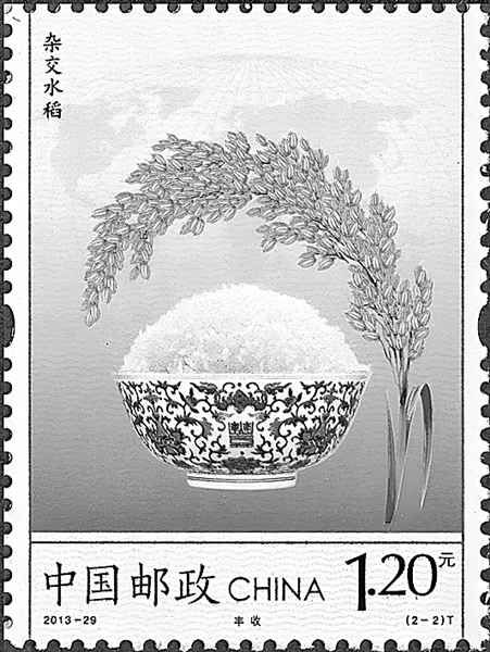 2013年10月25日,中国邮政发行的《杂交水稻》特种邮票,以其独特的视角和深刻的主题,再次强调了爱惜粮食的重要性。该套邮票的第二枚“丰收”(图3),以世界地图为背景,丰收的稻穗和米饭为主图,展现了杂交水稻这一伟大科技成果给世界带来的福音。它不仅解决了中国的粮食问题,还惠及了世界人民。更为巧妙的是,这套邮票在全张票的左边边纸上竖印着“爱惜粮食,节约粮食”八个醒目的大字,如同一声声警钟,时刻提醒着人们要珍惜来之不易的粮食,杜绝浪费。