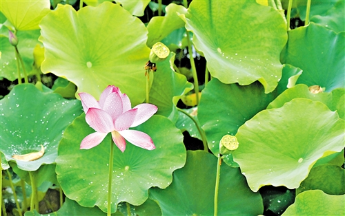 泗水镇梅畲村的田园荷田则别具诗意。青山环抱间,百亩荷塘与古朴村落融为一体,粉荷垂露、白荷带雨,宛如一幅水墨丹青画。雨后的荷田更具韵味——珠玉般的雨滴在荷叶上流转,蜜蜂振翅穿梭于九品香莲之间,空气中浮动着沁人心脾的荷香。