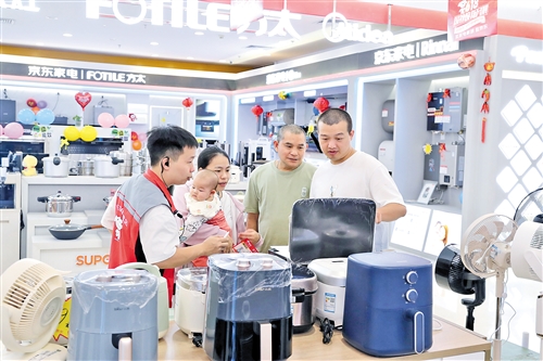 启动仪式结束后,记者走进京东家电家居梅州专卖店看到,格力、美的、海信等各大品牌的冰箱、洗衣机、电视机、热水器等家电一应俱全,每款产品商品售价、优惠信息等一目了然,店员们为顾客介绍各类家电的性能,并就各类优惠进行详细讲解,让他们在放心选购的同时能够享受到优惠政策。