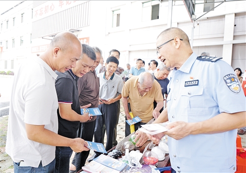 揭牌仪式后,举办了“深入贯彻中央八项规定精神 弘扬继承党的优良作风”主题联学活动,并在村委广场开展了首场法律服务日活动。梅江区司法局法律服务工作组、“银发初心志愿行”法律服务队向村民宣传法律法规,一对一提供法律服务。党员干部和律师“带案下访”,到村民家中调解家庭纠纷。市公安局梅江分局、梅江区妇联还开展了禁毒宣传(如右图,赖运香摄)和《广东省家庭教育促进条例》宣传活动。