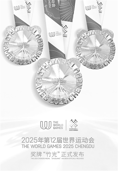 新华社成都6月19日电 19日,2025年第12届世界运动会奖牌“竹光”正式亮相。该奖牌名取自谐音“逐光”,不仅包含太阳神鸟纹饰、大熊猫等成都元素,还贴心地设计成“开口”的样式,运动员可将奖牌中的徽章赠予他人,承载着独特的“分享”理念。
