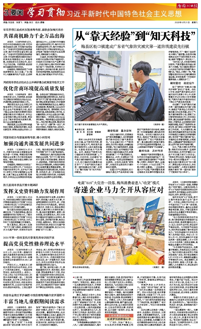 “在大型购物促销活动开启前,我们都会根据往年数据进行业务动态预测,提前配置相应的人力、运力,拉长作业时间,保证各环节高效运转。今年购物节战线拉长,相对来说也缓解了集中派送的压力。”京东快递梅州片区相关负责人张伟强介绍说,早在6月1日和6月2日,京东快递梅州片区就迎来第一波派送高峰,6月19日和6月20日迎来第二波派送高峰,高峰期业务量约为平时的两倍。