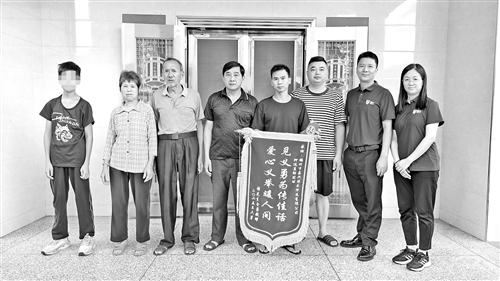 本报讯 (记者陈坚平 通讯员曾文婷)“真是太感谢您了,谢谢您救了我的孩子,这是救了我们全家啊!”6月22日上午,梅州市梅县区南口镇车陂村上演了温馨一幕。本报民生一线栏目6月17日报道的《男童不慎落水 押运员跳河勇救》一文中,溺水男童的父亲谢先生手捧一面写有“见义勇为传佳话 爱心义举暖人间”的锦旗,满怀感激地走进保安押运员邹冠球的家中,向这位曾挺身而出挽救孩子生命的“救命恩人”表达最诚挚的谢意。