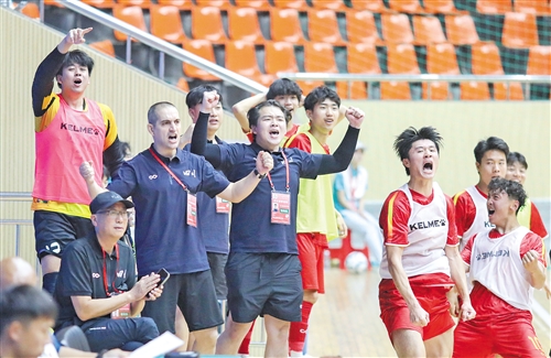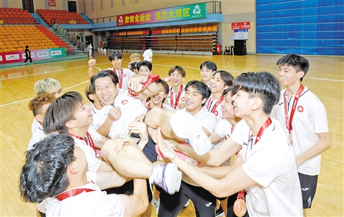 6月19日,第十五届全国运动会群众比赛足球项目五人制男子甲组进行最后一天的比赛,广东队夺冠。在赛后颁奖现场,季军香港队的队员们将主教练高高抛起,欢乐气氛感染全场,也为这段历时一个星期的赛事画上一个完美的句号。