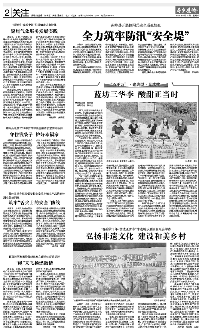 据悉,蕉岭县水务局将持续强化责任担当,推动防汛责任落实落细,密切关注雨情水情汛情变化,以更高标准、更严要求、更实举措,全面筑牢防汛安全防线;确保安全平稳度汛。“接下来,我们将持续紧盯雨情汛情变化,密切监测预警,滚动排查各类风险隐患点,同时严格巡查值守,确保应急力量充足,并加强部门协同联动,全力守护人民群众生命财产安全。”张志耀说。