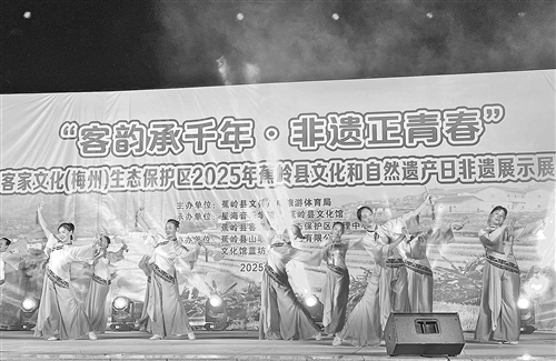 本报讯 为进一步丰富乡村群众文化生活,助力“百千万工程”,提高人民群众非物质文化遗产保护意识,近日,由蕉岭县文化广电旅游体育局主办,星海音乐学院、蕉岭县文化馆等单位承办,以“客韵承千年·非遗正青春”为主题的蕉岭县2025年“文化和自然遗产日”非遗展演暨“星光璀璨·蕉岭有约”乡村音乐节在蓝坊镇高思文化广场举行,活动通过极具非遗特色的舞台演出为乡村群众带来了一场精彩纷呈的文化盛宴,为蕉岭非遗的传承保护注入源源不断的青春动能。