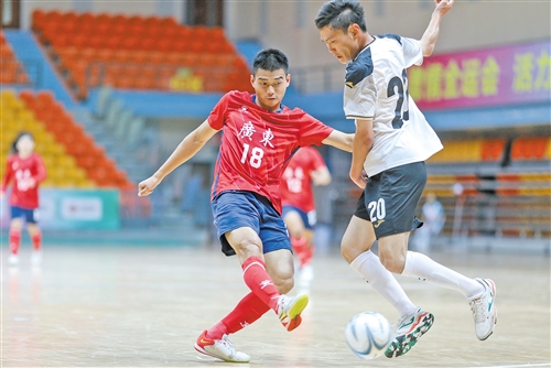 本报讯 (记者李盛华)6月25日,第十五届全国运动会群众比赛足球项目五人制男子乙组进行最后一轮小组赛。粤港两队分别获胜晋级,澳门队两连败遭淘汰。