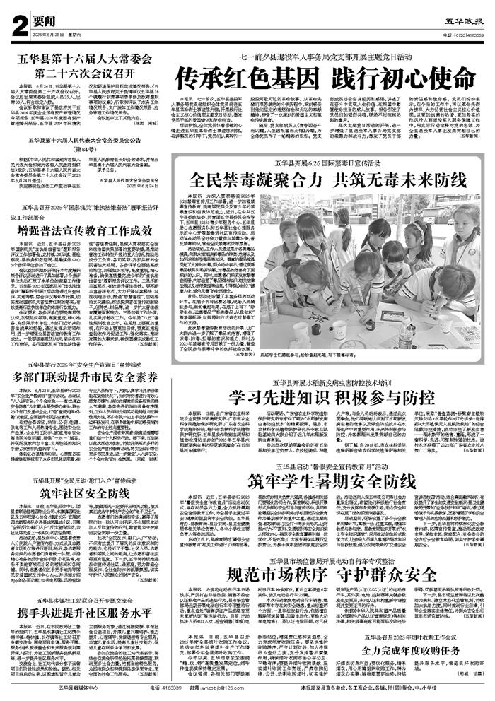 本报讯 近日,五华县举行2025年“暑假安全宣传教育月”活动启动仪式,旨在动员各方力量,全力抓好暑期安全宣传教育工作,为全县学生度过平安、健康的假期筑牢安全防线。五华县府办、县教育局、县公安局、县卫生健康局等相关单位负责人,各中小学校主要负责人等参加活动。