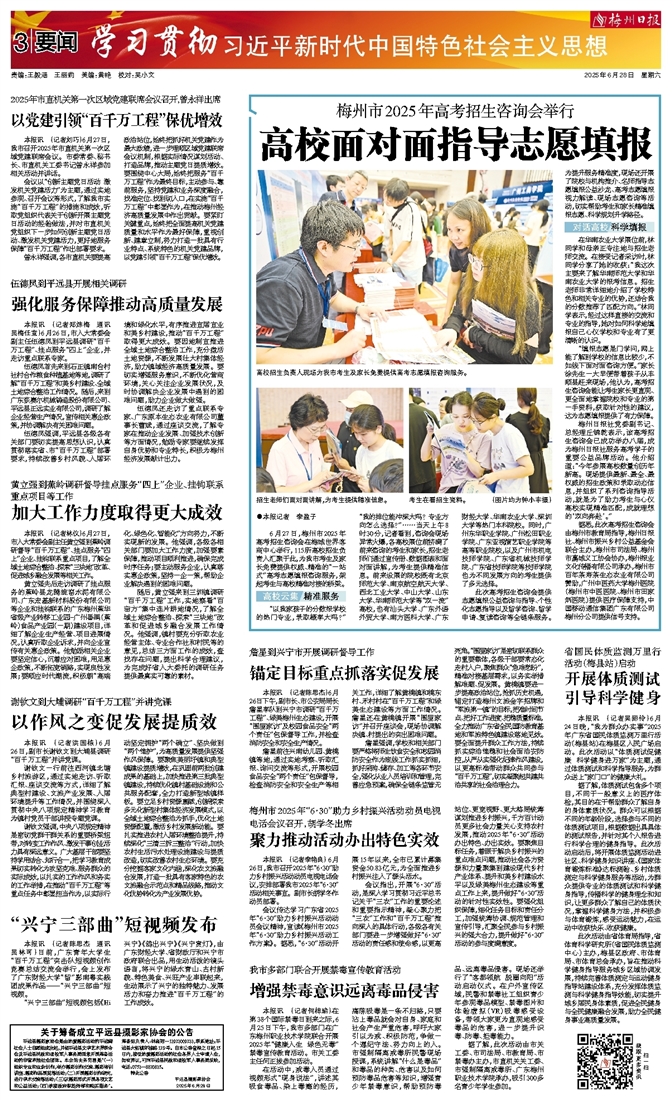 詹星强调,学校和相关部门要严格将师生饮食安全和校园消防安全作为底线工作抓实抓细,抓好采购、储存、加工等各环节安全,强化从业人员培训和管理,完善应急预案,确保全链条监管无死角。“围屋家访”是密切联系群众的重要载体,各级干部要常态化走村入户,聚焦群众“急难愁盼”,精准对接基层需求,以务实举措解难题、促发展。黄槐镇要进一步提高政治站位,抢抓历史机遇,锚定打造梅州文旅金字招牌和“军旅第一镇”的目标,把准时间节点、把好工作进度、把稳质量标准,全力推动广东省全民国防教育基地和军旅特色镇建设落地见效。要全面提升群众工作方法,持续抓实综治维稳和社会面治安防控,从严从实强化纪律作风建设,以更高标准带动群众共同参与“百千万工程”,切实凝聚起共建共治共享的社会治理合力。