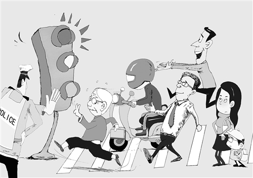 “中国式过马路”一直是困扰城市交通的痼疾。尽管非机动车与行人闯红灯的危害妇孺皆知,但一些市民还是会不分场合、下意识地以身犯险、屡教屡犯,这无外乎三个原因:一是贪图方便,为了省事和赶时间往往无意地去闯“关”;二是心存侥幸,抱着试一试的心理闯了一两次红灯,结果没有发生事故,也没被查处,一来二去也就“习惯成自然”了;三是法不责众,囿于执法力量有限,而且纠违基本上以教育为主,在随大流的语境下慢慢养成了交通陋习。