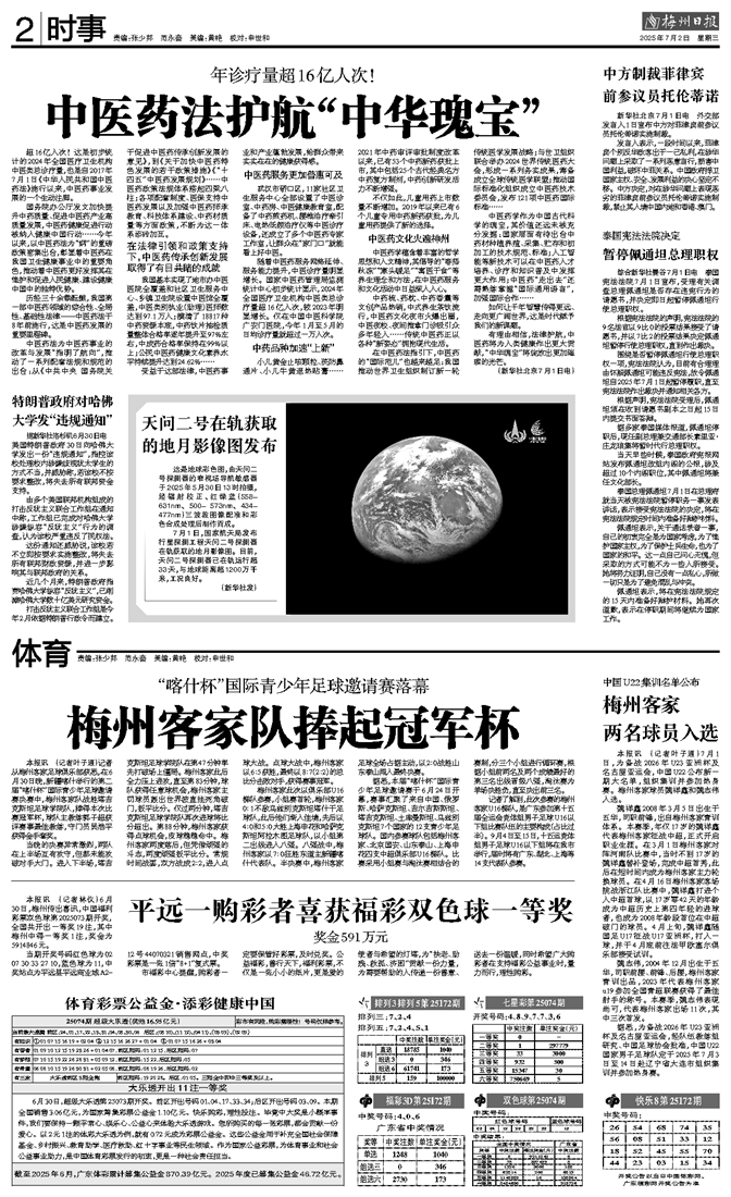 本报讯 (记者林仪)6月30日,梅州传出喜讯,中国福利彩票双色球第2025073期开奖,全国共开出一等奖19注,其中梅州中得一等奖1注,奖金为5914846元。
