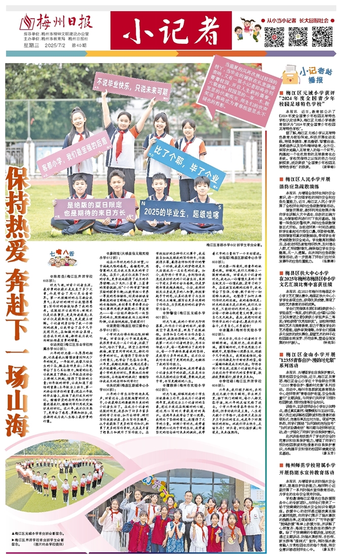 当盛夏的风再次拂过校园的枝丫,当毕业的骊歌在礼堂缓缓奏响,又有一届小记者即将告别菁菁校园,开启人生新的篇章。六载春秋,校园里的一草一木、教室里的伏案疾书、师生们的欢声笑语,都将成为青春相册里永不褪色的剪影。