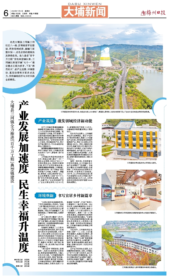 从产业兴旺到生态宜居,从文旅繁荣到治理有效,当前,三河镇正以“百千万工程”为总抓手,奋力书写乡村全面振兴的精彩答卷。如今的三河镇,既有产业发展的“速度”,也有民生幸福的“温度”,一幅产业兴、生态美、百姓富的乡村振兴新画卷正徐徐铺展。
