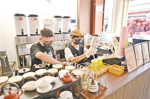 凌风路一家茶类饮品店的主理人房昌威是本地90后。他认准了老街的发展后劲,在今年6月初,将自己创立的品牌店开在了凌风路。“节假日万人空巷的老街,让我看到了商机,”房昌威表示,“进驻老街一个月,通过线上线下结合的营销模式,取得了不错的成绩。”与传统的老行当相比,这家茶饮店在装潢设计上彰显当前年轻人喜欢的中古风,茶饮制作更多选择了鲜萃等体现茶叶本味的方式。“我们希望未来能做更多梅州的茶产品,也呼吁更多梅州本土的优秀品牌进驻老街,一起将老街的商业做出圈。”房昌威直言,店里绝大多数的客户是年轻人,而年轻人代表着发展与未来。