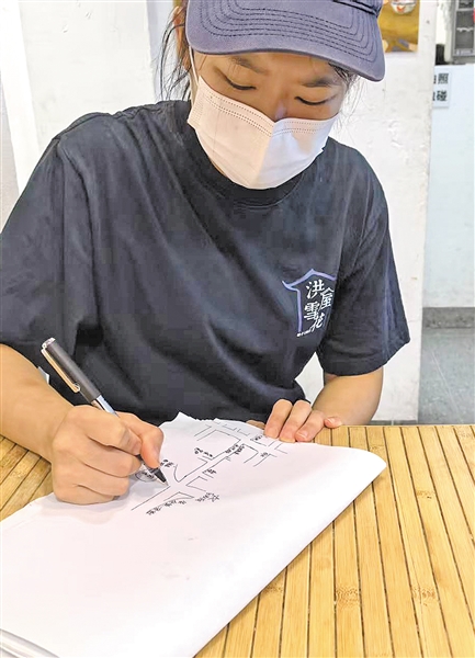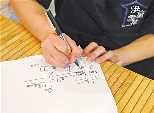 与茶饮店一街之隔的,是梅城一家知名的雪花冰室。这家有着40多年历史的老字号已几经换脸,不管是形象还是产品,都在为迎合年轻人喜好而进行改变。范书婷从公公洪唐手中接过了经营的担子。她说:“老街改造之后,店里的客人比以前更多了。我们虽然是老店,但是创新的压力也更大了,要不断提高自己的产品和服务,才能在老街继续开下去。”走进这家开在内巷里的小店,扑面而来的是热情与温馨的服务。店内的工作人员钟均樱,因为一次热心帮助外地游客手绘古城美食地图而得到众多网友的称赞。此后许多人特地寻来此店,希望阿樱为他们手绘一张美食地图。这似乎已成为他们旅途中最想要感受的来自这座城市的善意和温暖,它比饮食更耐人寻味。