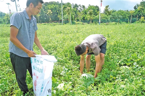 据基地负责人介绍,今年基地种植西瓜80亩,品种有石头瓜、麒麟瓜、美人瓜,今年雨水充足,西瓜产量预计在10万斤左右。记者注意到,采摘区内的西瓜周围都长满了杂草,并没有对这些杂草进行清除。据介绍,基地采用的是一种生态种植方式,不施加任何的农药,这样不仅使西瓜更绿色健康,还可以减少人为干预,种出来的西瓜除了口感更好,也让西瓜的品质能够达到最佳,更让前来采摘的游客感受到“秘境”寻瓜的乐趣。这样一种“农旅”融合的模式,吸引了更多的游客前来参观和体验,这不仅为基地带来了更多的经济收益,也为当地的乡村旅游注入了新的活力。