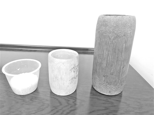 《吕氏春秋·仲秋》对角亦有描述:“正钧石,齐升角。”意思是说,要校正量器和衡器就要用石、升、角。角在升之后,显然比升小。在宋代,酒的容器种类繁多,有瓮、坛、桶、瓢、角、瓶、葫芦等。例如,《水浒传》第三回《史大郎夜走华阴县 鲁提辖拳打镇关西》,有一段描述鲁智深偶遇史进后,来到酒肆中畅饮的情景: 鲁提辖坐了主位,李忠对席,史进下首坐了。酒保唱了喏,认得是鲁提辖,便道:“提辖官人,打多少酒?”鲁达道:“先打四角酒来。”可见,宋时酒的计量就常用角。据研究,宋时的“四角酒”大概相当于当今的四至六市斤酒。不过,不同历史时期,角的实际容量是有差异的。现代汉语的“角”并没有容具的含义和用于计量了,而这个含义在客家方言里保留了下来。通常市售的电饭煲都会搭配一个量米的小杯子,这个杯子就叫“米角”。以前有人也会把热水瓶的盖子、炼乳罐头的罐子拿来舀米,这些器具也可称为“米角”。客家人所称的“角”除了具有杯子一样的功能外,尚可作量具,这是“角”与“杯”的最大区别。米角、米合(gě)、米筒(见图②)都是常用量米器具,都呈圆筒状,或像杯子一样,民间也常常把它们混为一谈。实际上,它们之间还是有些区别的。米角、米筒只限于民间使用,容量并无具体的规定,而米合则不同,合、升、斗、石是十进制的关系,是官方使用的计量单位。总的来说,米筒的容量比米合大,而米角的容量则较随意,或是在米合容量之上,或是在米合容量之下。另外,米筒、米合一般是竹筒裁截、刨制而成,而米角的制作材料可以是竹木、塑料或金属。在客家方言里,“角”作为容器、量具的含义,除了水角、酒角、米角外,应用上还可以扩展,比如把纸折成的袋子、容器也叫“纸角”。民间有句俗语“纸角装盐爱包咸(涵)”,这是双关语,意思是望对方多多包涵。