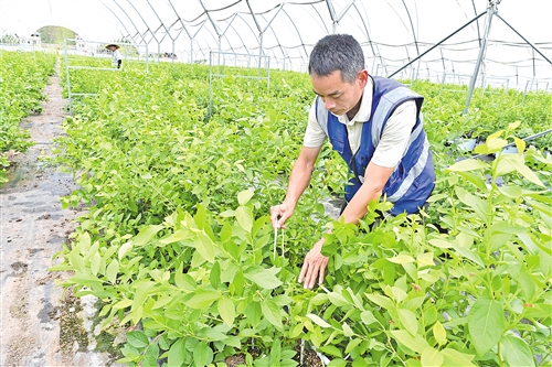 走进大柘镇黄花陂,一片片覆盖着特殊膜布的现代化智慧农业大棚在阳光下格外醒目。梅州腾夏农业科技有限公司蓝莓基地厂长王浩宏正仔细检查滴灌系统,确保每一株蓝莓都能获得精准滋养。“我们目标很明确,就是要打造粤东高品质蓝莓标杆。”王浩宏向记者介绍道。