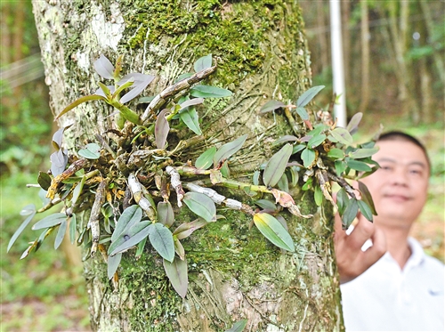 梅州绿盛林业科技有限公司是当地林下经济的龙头企业。据姚强介绍,他们深耕石斛产业13年,目前已建成2600多亩的铁皮石斛仿野生种植基地。“石斛对环境要求苛刻,必须通风透气且潮湿,经常需要人工浇水。”姚强说。