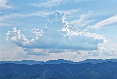 乡村的青山尖上,云是另一番模样。棉絮般的云团浮在青山上,像两头牛正剑拔弩张地相对着;不一会儿又如鸟群掠过稻田,把稻穗压得弯下腰。山脚下的人家躲在云层带来的阴凉处,门坪上的光影里,云影转着圈。