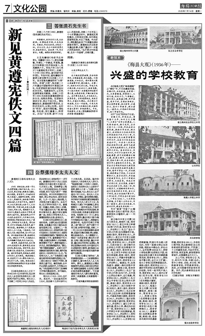 在《梅县大观》“梅县概略”之“绪论”中,不无自豪地写道:吾梅文风,由来极盛,在有清一代,尤焚膏继晷,焠掌刳心,父诏兄勉,孜孜不已,飞黄腾达,瞬尔青云,故乾嘉以降,科甲鼎盛,有声于时,自清政维新后,黄公度等前辈,倡办新学,不遗余力,因而小学教育,颇为普及,一般民众,不待施行强迫教育,始入学读书也。