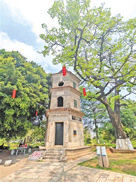 “镬耳山墙一望收,三间两廊笔塔楼。笔墨纸砚格局特,双榕挂月水长流。”文塔旁边,两棵有着百年历史的古榕如伞如盖,村民把它们称作“古榕挂月”。古榕荫下,绿意盎然,村民们、游客们闲坐乘凉,喝茶聊天,欣赏古村生态美景,感受古村浓厚的文化气息。时间在这一刻都慢了下来,如此美好。