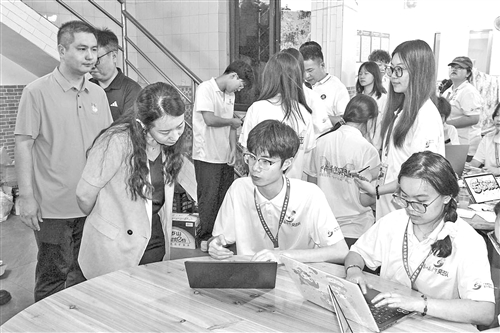 “晨曦寻梦”突击队带队老师介绍,团队围绕“文化赋能、产业助推、教育支持”三大方向开展工作:艺术设计专业的学生们,紧贴长田实际需求,精心创作了以“仁义礼智信”为主题的乡村墙绘,为这片土地平添了浓厚的文化韵味;数字推广小组对接本地企业,利用新媒体平台开展直播带货和宣传,推介黄金姜糖、百香果等“长田好物”,助力当地产业发展;此外,团队还特意筹备了1000册图书,并同步开展普通话推广调研活动,从多个维度为长田的教育事业添砖加瓦。