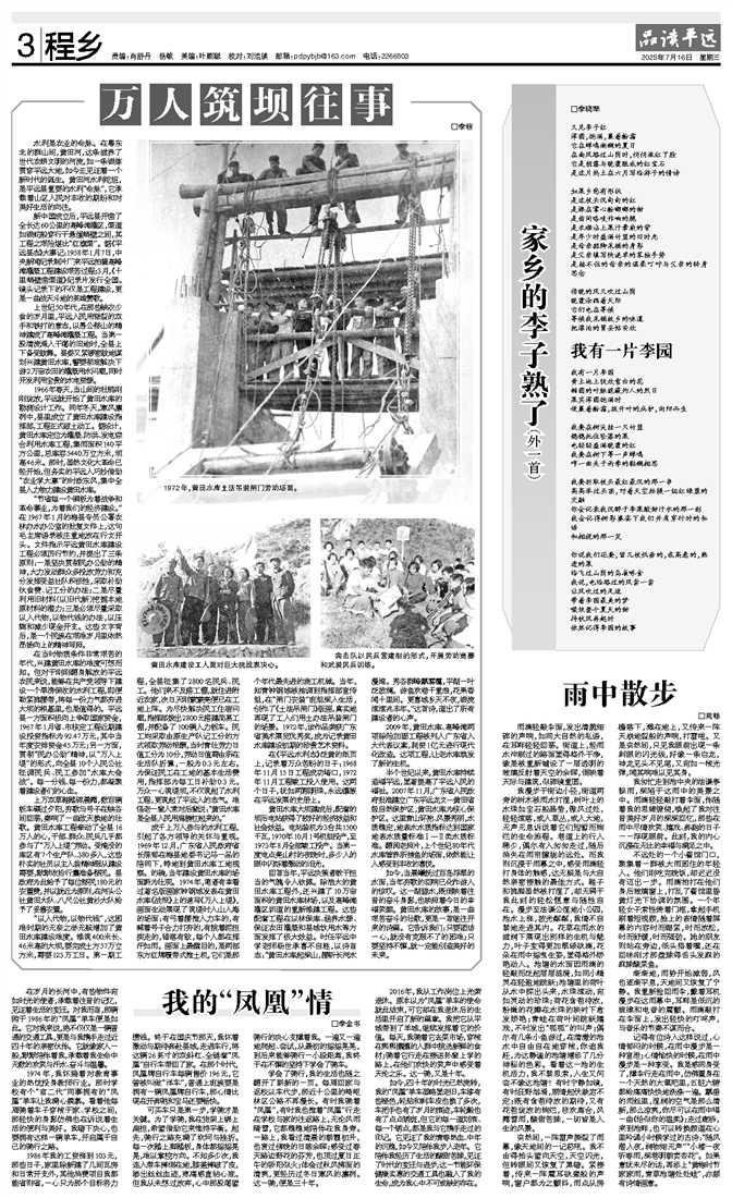 回首当年,平远决策者敢于担当的气魄令人钦佩。除浩大的黄田水库工程外,还兴建了10万亩面积的黄田水库林场,以及高峰滩灌区圳道的重新修建工程。这些配套工程在以林保库、涵养水源、保证农田灌溉和县城饮用水等方面发挥了极大效益。时任平远中学老师杨世承喜不自胜,以诗言志:“黄田水库起深山,腰斩长河水漫湾。秀谷群峰飘雾霭,平湖一叶泛波澜。游鱼欢卷千重浪,花果香闻十里间。更喜城乡天不夜,银流滚滚兆丰年。”这首诗,道出了所有建设者的心声。