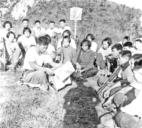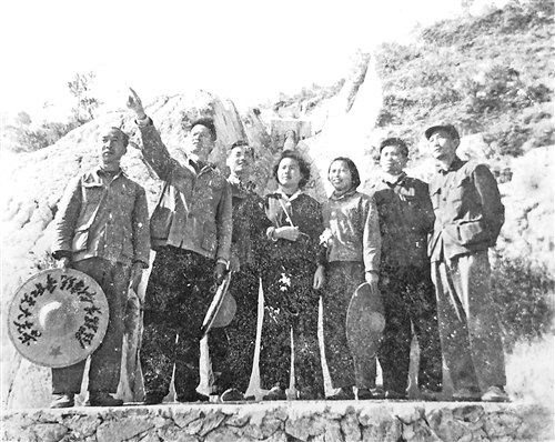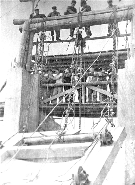 成千上万人参与的水利工程,引起了各方领导的关怀与重视。1969年12月,广东省人民政府省长陈郁在梅县地委书记马一品的陪同下,特地到黄田水库工地视察。的确,当年建设黄田水库的场面蔚为壮观。1974年,笔者有幸看过著名版画家钟钢城发表在黄田水库《战报》上的速写《万人上堤》,画面生动展现了筑堤时人山人海的场面:有弓着腰推人力车的,有喊着号子合力打夯的,有挑着泥担疾走的,错落有致,每个人都在挥汗如雨。画面上最醒目的,是两部东方红牌履带式推土机,它们是那个年代最先进的施工机械。当年,知青钟钢城被抽调到指挥部宣传组,在“闸门安装”班组深入生活,创作了《土法吊闸门》版画,真实地再现了工人们用土办法吊装闸门的场景。1972年,该作品荣获广东省美术展览优秀奖,成为记录黄田水库建设初期的珍贵艺术资料。