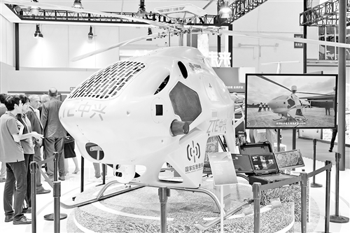 7月16日在数字科技链展区拍摄的大型无人直升机应急救援平台。
