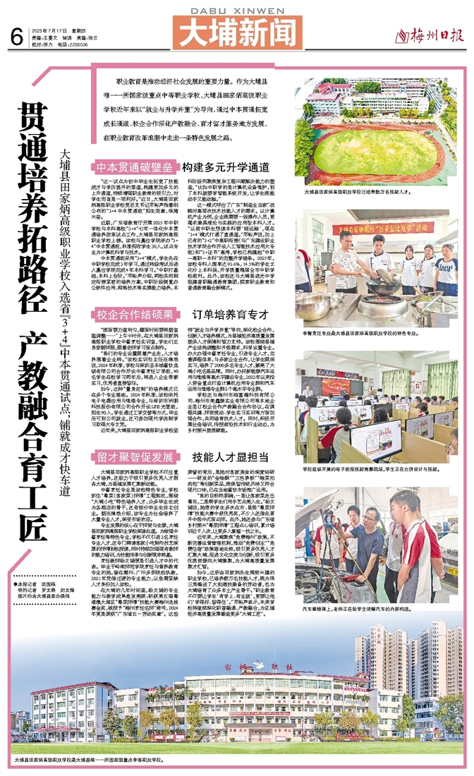 职业教育是推动经济社会发展的重要力量。作为大埔县唯一一所国家级重点中等职业学校,大埔县田家炳高级职业学校近年来以“就业与升学并重”为导向,通过中本贯通拓宽成长通道、校企合作深化产教融合、育才留才服务地方发展,在职业教育改革浪潮中走出一条特色发展之路。