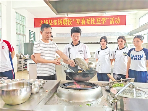近年来,大埔县田家炳高级职业学校坚持“就业与升学并重”导向,深化校企合作,创新人才培养模式,为县域经济高质量发展提供人才保障和智力支持。该校围绕县域产业结构调整和升级需求,科学设置专业。办大办强中餐烹饪专业,引进专业人才,完善课程体系,与多家企业合作,让学生跟岗实习,培养了2000多名专业人才,擦亮了大埔小吃名县品牌。同时,办好新能源汽车运用与维修等高水平建设专业,2022年以来投入资金重点打造计算机应用专业群和汽车运用与维修专业群2个高水平专业群。