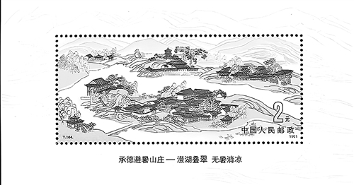 承德避暑山庄是中国现存最大的古典园林。1991年8月10日,原邮电部发行了《承德避暑山庄》特种邮票一套3枚,小型张1枚。邮票主图分别为万壑松风、水榭环碧、青枫绿屿。小型张则展现了“澄湖叠翠,无暑清凉”的自然景观。