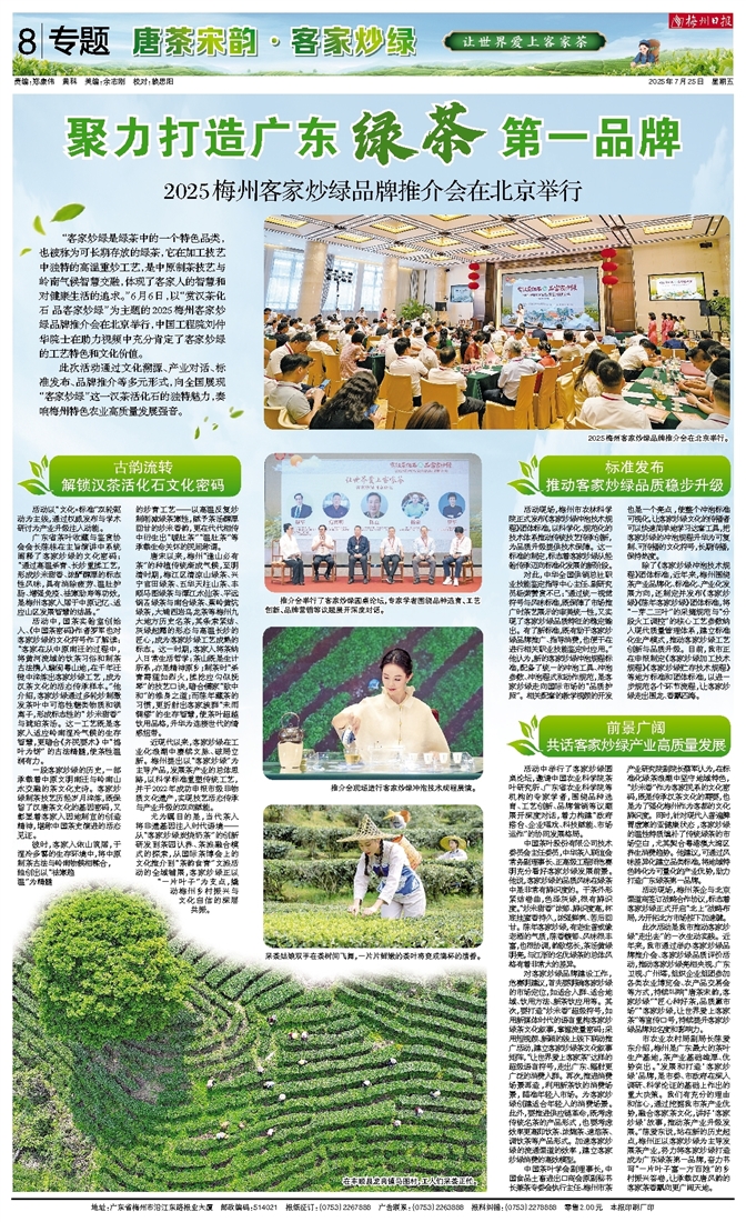 此次活动通过文化溯源、产业对话、标准发布、品牌推介等多元形式,向全国展现“客家炒绿”这一汉茶活化石的独特魅力,奏响梅州特色农业高质量发展强音。