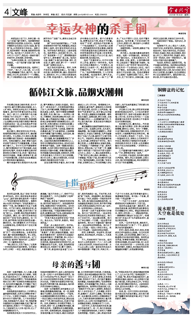 民谣?多么美妙的词汇。刚开始,我的想法很简单,不想懂歌里的故事,只是单纯觉得歌好听。可是同桌的一句“我喜欢”,不禁让我暗自思量着。谁安慰多愁善感的你?谁把你的长发盘起?谁会给你嫁衣?想着想着,我心中如小鹿乱撞,脸也异常地热乎起来。日后,一见到同桌,我就会因紧张而忸怩不安,话到嘴边却说不出来。但是,我会特别留意见面以后,同桌笑了没,露了几颗牙。