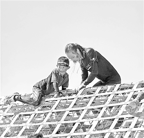一次偶然的机会,饶志坤得知了斯巴达勇士赛。区别于专项的跑步或球类运动,斯巴达勇士赛是一项综合性项目赛事,它要求参赛选手在规定时间内,完成包含三阶穿越(高低板穿越)、人猿泰山(吊环或绳索摆动)、宙斯的惩罚(沙袋搬运)、飞檐走壁(类似攀岩,横向移动)等多个不同关卡的全能挑战。他觉得这个项目很适合带孩子参加。