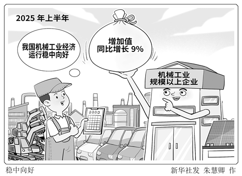 新华社北京8月4日电 中国机械工业联合会4日发布数据显示,今年上半年,我国机械工业经济运行稳中向好,产品产销平稳增长。其中机械工业规模以上企业增加值同比增长9%,增速高于全国工业和制造业2.6和2个百分点。