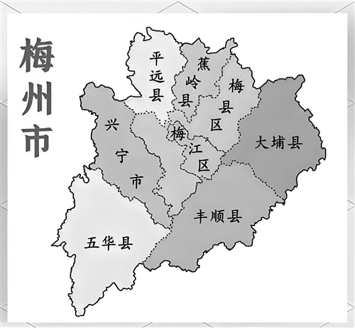 民国(1912—1949)嘉应州改名梅县,但大埔、丰顺还是属于潮州。到了1949年新中国成立后设“兴梅专区”,一口气把原嘉应五属(梅县、兴宁、五华、平远、蕉岭)加上正式脱离潮州的大埔、丰顺,加入梅州大家庭。但好事多磨,1952年至1965年之间,兴梅专区被撤,7个县暂时归汕头专区管(汕头当时管整个粤东)。1965年7月1日,又成立了梅县专区(不久改称梅县地区),7个县从汕头分出来,从此稳定属于梅州政区体系。