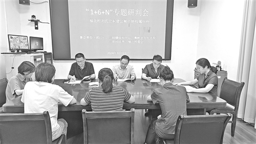 对此,为妥善化解此类纠纷,新铺法庭坚持专业化审理和参与基层治理并举,探索实质性化解矛盾纠纷新路径。一方面,加强类案专审,不定期开展业务研讨,梳理案情、分类研判、对症下药,保证案件质效。另一方面,提升涉农纠纷诉前调解力量,联合三圳镇综治中心,依托“1+6+N”工作体系,组建由法官、综治中心及司法所工作人员、下乡组联络员、村干部、“五老”调解员等组成的调解组,合力攻坚基层“疑难杂症”。目前,已建13个调解组,“联合作战”工作模式在三圳镇全面铺开……“基层治理需要从‘物理整合’向‘化学融合’转变,‘攥指成拳’比‘单打独斗’要高效便捷得多。将综治中心打造成多元解纷‘桥头堡’是民之所向。”提起协同共治机制建立初衷,张彬洛侃侃而谈。