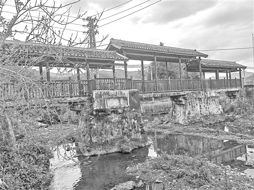 高思村主要河流为高思河。沿缵绪堂古屋左侧明月古道南行300米,便可见跨于高思河之上、造型独特而略显沧桑的泉水桥。此桥始建于清康熙年间(1662-1722),至今有300多年的历史,为三孔石墩木顶廊桥。桥长约15米,中间桥墩东面有石刻“泉水桥”桥名,桥下原有水潭,桥侧有泉水井,水质清澈。