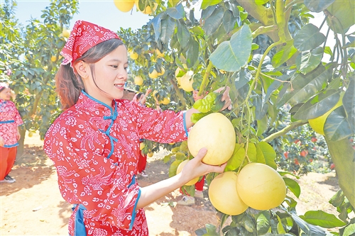 金秋时节,在“世界长寿乡”“中国蜜柚之乡”大埔县,漫山遍野的柚树上挂满沉甸甸的果实,清甜的柚香弥漫在山间田野。作为大埔富民强县的支柱产业,蜜柚产业已形成从种植到加工、从品牌到销售的全链条体系,预计今年蜜柚产量突破35万吨,不仅畅销国内多地,更远销海外。如今,大埔蜜柚产业正以蓬勃姿态,书写着乡村振兴的生动答卷。