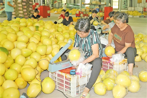 在筑牢品质根基的同时,大埔县以蜜柚为核心土特产,优化产业布局,激活农村“造血功能”。2019年以来,全县在特色农产品培育发展中的投入,有67%集中在蜜柚产业相关配套项目,从冷链物流设施建设到深加工生产线引进,全方位提升产业配套能力。依托得天独厚的自然条件,湖寮、茶阳、百侯、青溪、西河5个镇成为蜜柚特色产业重点发展区域,形成规模化、集约化种植基地;湖寮镇双髻山村、青溪镇溪口村等20个村凭借蜜柚种植形成特色产业村,构建起“镇有特色产业、村有优势产品”的发展格局。
