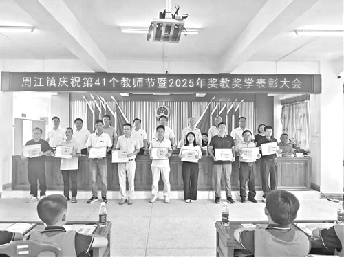 9月6日,周江镇召开庆祝第41个教师节暨奖教奖学表彰大会,副县长邝逸平出席。自教育发展基金会成立以来,累计募集资金超500万元,全部用于奖教奖学和学校建设。2025年中考,17人超特控线,77人达重点中学分数线。周江中学、中兴学校等运动场地持续升级,育人环境不断优化。邝逸平强调,要弘扬教育家精神,将红色文化、客家文化融入教学,让尊师重教成为周江的亮丽名片。
