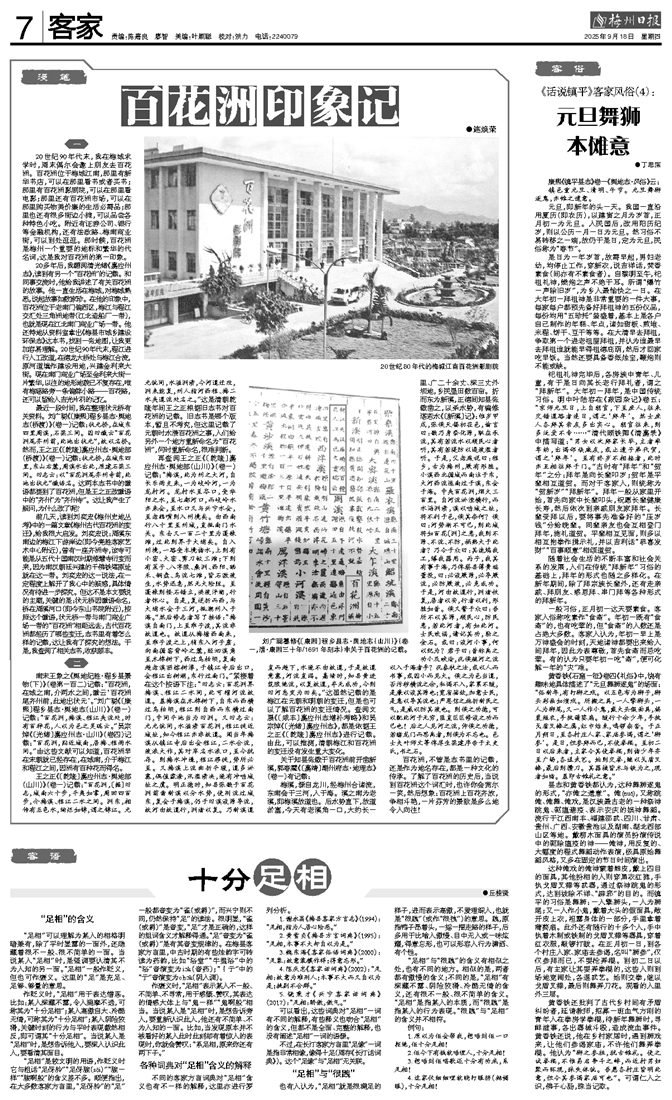 黄香铁《石窟一征》卷四《礼俗》中,饶有趣味地具体描述了“元旦舞狮逐鬼”的场面:“俗新年,有打狮之戏。以五色布为狮子,狮头彩画如演戏。所搬之具,一人擎狮头,一人为狮尾,又一人作小鬼,戴大头假面具,裼裘短衣,手执蒲葵扇。随行十余少年,手执戈盾叉棒之属,红巾结束,鸣锣杂沓。于正月朔日,至各村庄人家、家庙参谒,谓之‘狮参’。是日,但参拜而已,不使拳棍。至初二日以后来者,主家令其使拳棍,则诸少年齐至广场,各逞武艺。始则交拳,继以戈盾叉棒,最后则攒刀。其器械皆木与铁为之,观者如堵。盖即古傩礼之意。”