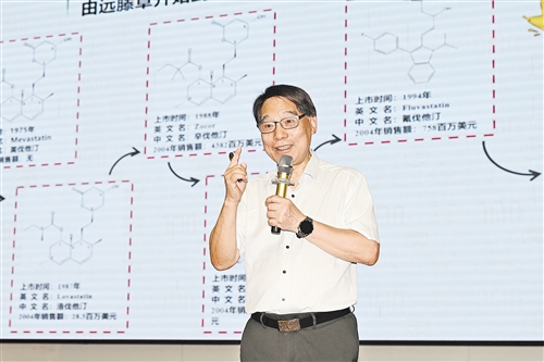“什么叫手性?就好比人的双手看起来一模一样,但左手戴不进右手的手套,因为它们的立体结构不同,在化学中,这就叫作手性,也叫镜像对映体。”作为全世界最早涉足手性药物的学者之一,陈新滋院士在讲座中向同学们耐心科普道,互为手性的药物进入人体后往往会呈现疗效、毒性等方面的差异,而科学家们要做的,就是通过有效地控制,尽量只合成单一手性药物,减少后期分离所造成的成本浪费。