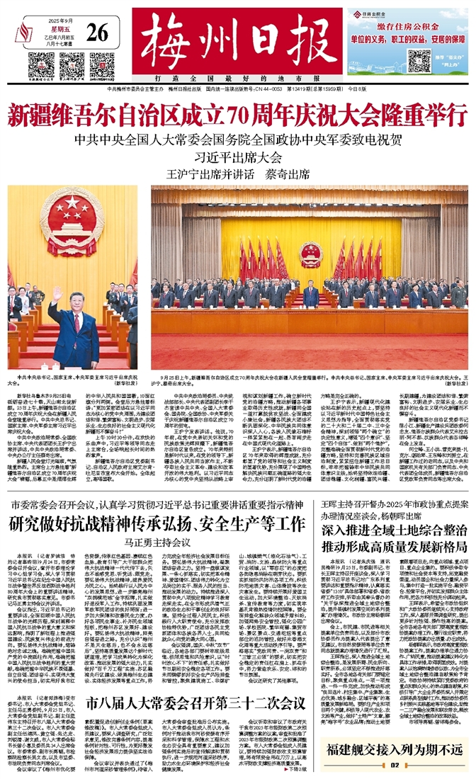 会议指出,习近平总书记的重要讲话,全面回顾中国人民抗日战争的光辉历程,深刻阐释中国人民抗日战争的重大意义和深远影响,指明了新征程上推进强国建设、民族复兴伟业的前进方向。要弘扬伟大抗战精神,熔铸绝对忠诚之魂。准确把握中国共产党的中流砥柱作用,准确把握中国人民抗日战争胜利的重大贡献,准确把握中华民族不畏强暴、自立自强、团结奋斗、实现伟大复兴的使命担当,切实用好我市红色资源,传承红色基因、赓续红色血脉,教育引导广大干部群众把伟大抗战精神一代代传下去,矢志不渝感党恩、听党话、跟党走。要弘扬伟大抗战精神,滋养爱民为民之心。始终践行以人民为中心的发展思想,进一步擦亮梅州“双拥模范城”金字招牌,扎实做好退役军人工作,持续巩固发展军政军民团结的良好局面;进一步加大保障和改善民生力度,办好各项民生事业、补齐民生领域短板,把梅州苏区发展好、建设好。要弘扬伟大抗战精神,照亮自强奋进之路。充分认识“梅州不是天生落后,也不会永远落后”,坚持高质量发展这个新时代硬道理,把学习成果转化为深化改革、推动发展的强大动力,扎实做好“百千万工程”实施、苏区融湾先行区建设、绿美梅州生态建设、实体经济发展等重点工作,努力完成全年经济社会发展目标任务。要弘扬伟大抗战精神,凝聚团结奋进之力。坚持一盘棋谋发展、一条心抓落实,切实把革命精神、爱国情怀、团结伟力转化为立足岗位的实干、服务人民的担当、推动发展的动力。持续推进深入贯彻中央八项规定精神学习教育走深走实,在全市形成风清气正的政治生态和干事创业的良好环境。坚持全过程人民民主,积极践行人大职责使命,充分发挥政协独特优势,广泛团结各民主党派团体和各族各界人士,共同绘就众心向党的最大同心圆。